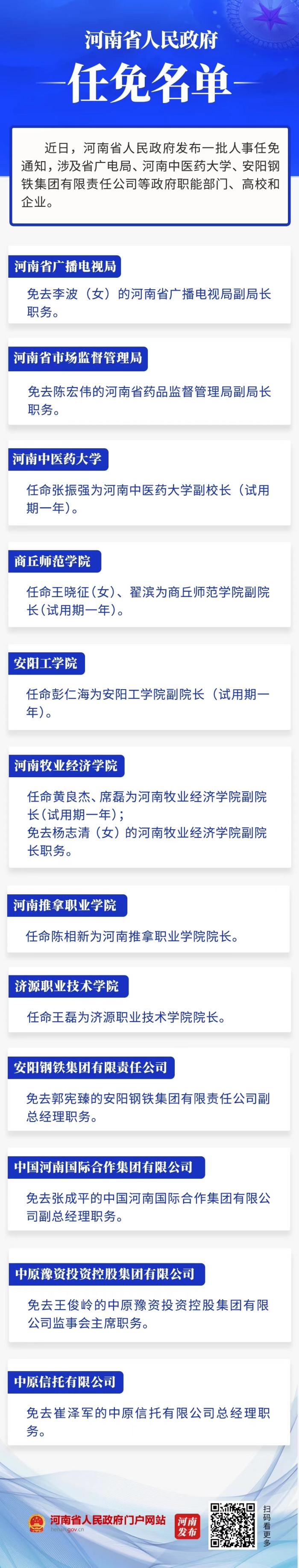 河南省政府新任免一批干部