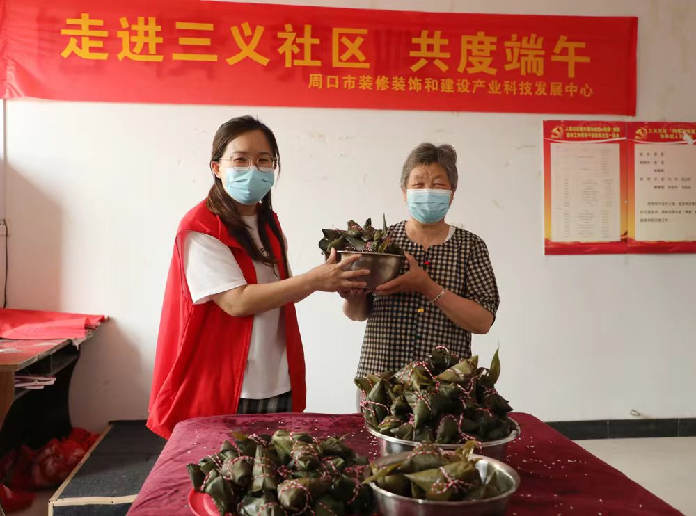 绿粽飘香,又是一年端午节,为弘扬中华民族传统文化,让社区居民更好地感受端午节丰富的文化内涵,5月31日,周口市装修装饰和建设产业科技发展中心志愿者走进川汇区三义街,与社区居民开展端午节包粽子爱心传递活动。