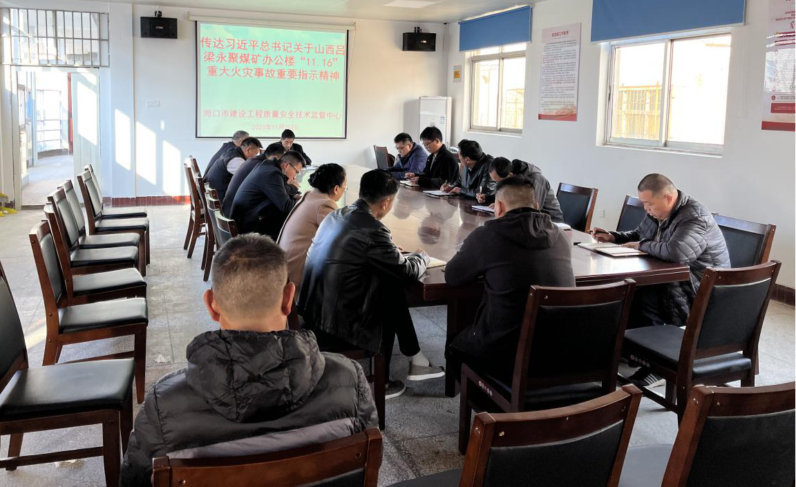 11月20日,市建设工程质量安全技术监督中心召开全体安全监督人员会议,传达学习习近平总书记关于山西吕梁永聚煤矿“11·16”重大火灾事故重要指示精神,分析研判当前我市建筑施工安全风险,安排部署安全生产工作。