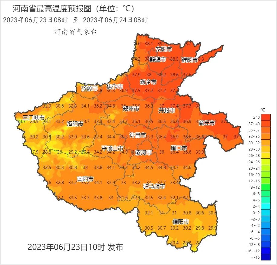 明天,北部、中东部最高气温持续37度以上,北部部分县市可达 39到 41度;