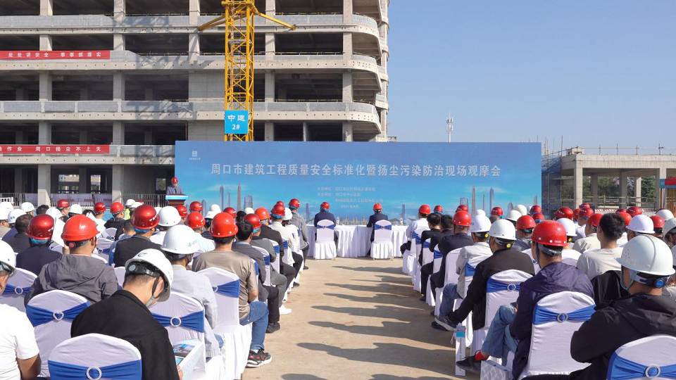 为进一步提升我市建筑工程质量安全和扬尘防治标准化、规范化水平,助推建筑业高质量发展。9月25日上午,市住房城乡建设局在阜外华中心血管病医院周口医院病房大楼项目,组织召开周口市建筑工程质量安全标准化暨扬尘污染防治现场观摩会。市住房和城乡建设局党组成员、副局长薛景松,市建设工程质量安全技术监督中心主任张伟出席会议;局相关科室、局属有关单位负责人,各县(市、区)住房城乡建设局分管领导及相关科室负责人,中心城区在建工程建设、施工、监理单位项目负责人等近200人参加会议。