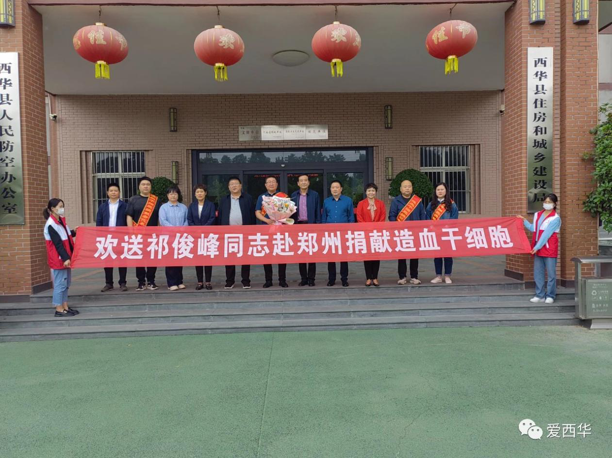 2023年5月5日上午,祁俊峰同志赴郑州捐献造血干细胞欢送仪式在西华县住房和城乡建设局举行。市红十字会常务副会长郭宇、副会长高春,西华县政府副县长张翠霞出席欢送仪式。